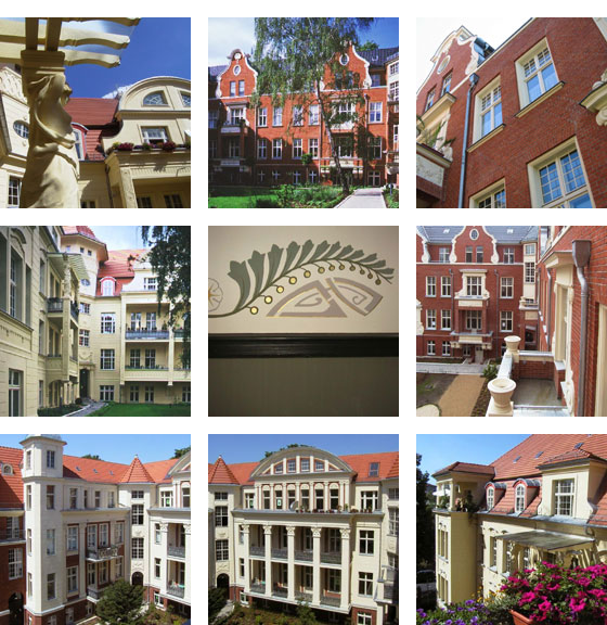 Die ehemals großbürgerliche Wohnanlage entstand 1905 – 1907, befindet sich in unmittelbarer Nähe des Holländischen Viertels in Potsdam und umfaßt 117 Wohn- und Gewerbeeinheiten. Die gründerzeitliche Anlage ist um drei Schmuckhöfe angeordnet, jede Wohnung ist dreiseitig belichtet. Die Fassaden der drei Gebäudegruppen lehnen sich an die Architektur des Jugendstils, des nahen Holländischen Viertels und des Neuen Palais an. Die Raumhöhen betragen über 3,50m, es gibt vor der Modernisierung nur Wohnungen mit 4 – 6 Zimmern.