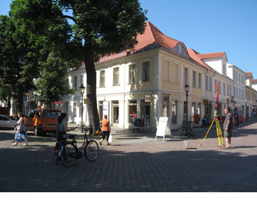 Wo die Lindenstrae die Brandenburger Strae (Fußgängerzone) kreuzt, konnte in vier barocken Typenhäusern Einzelhandeslfläche in erheblicher Größe entwickelt werden.